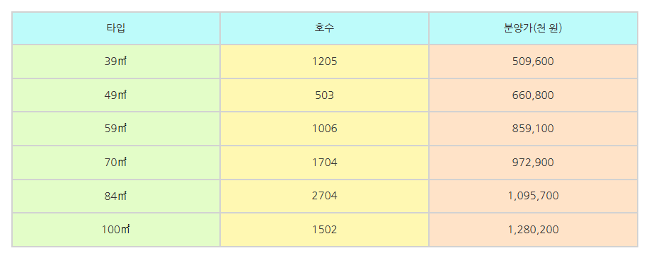 - 84㎡: 대표적인 국민 평형, 수요 가장 많음