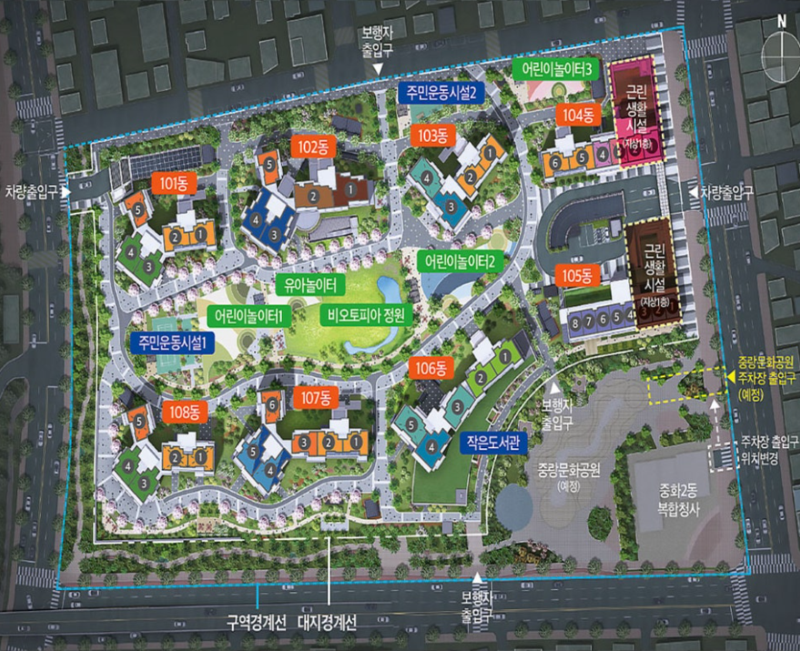 - 커뮤니티 시설, 유치원 등 단지 내 조성